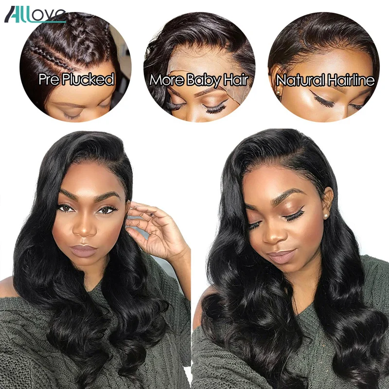 Special Offer 13x4 cuerpo onda frente de encaje pelucas de cabello humano Pre desplumado con pelo de bebé amor brasileño onda del cuerpo peluca frontal de encaje para las mujeres negras Discount 55% Today!