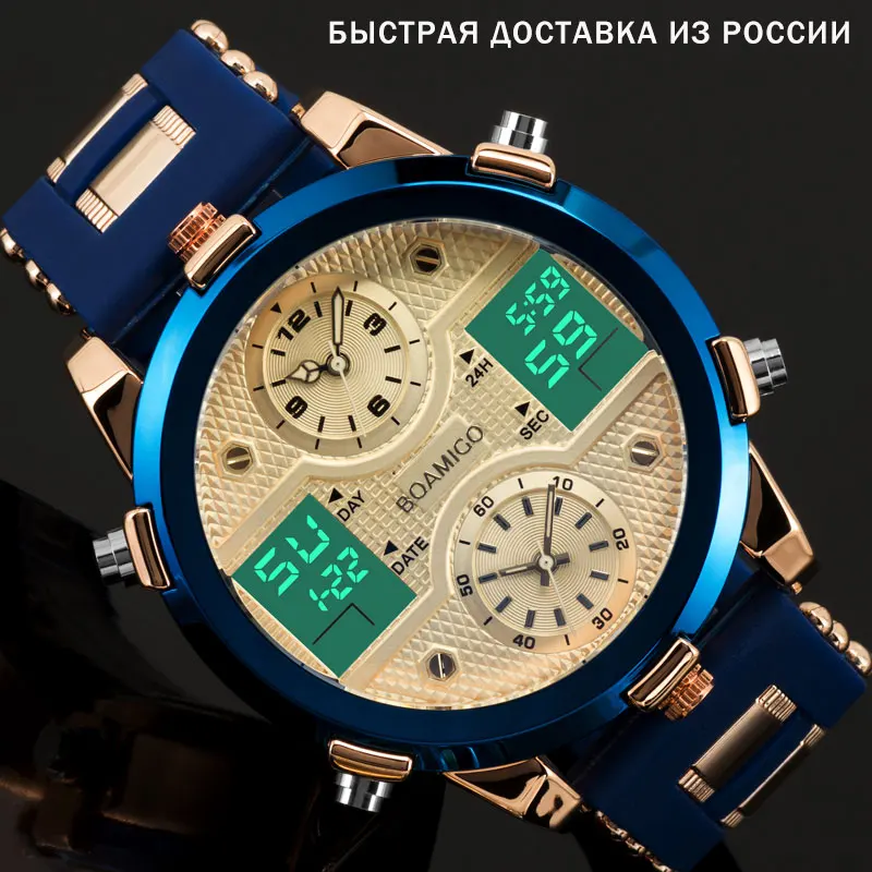 Special Offer BOAMIGO relojes para hombre de la marca de lujo de los hombres de deportes hombres relojes de cuarzo Digital LED 3 reloj hombre oro azul militar reloj de pulsera Discount 80% Today!