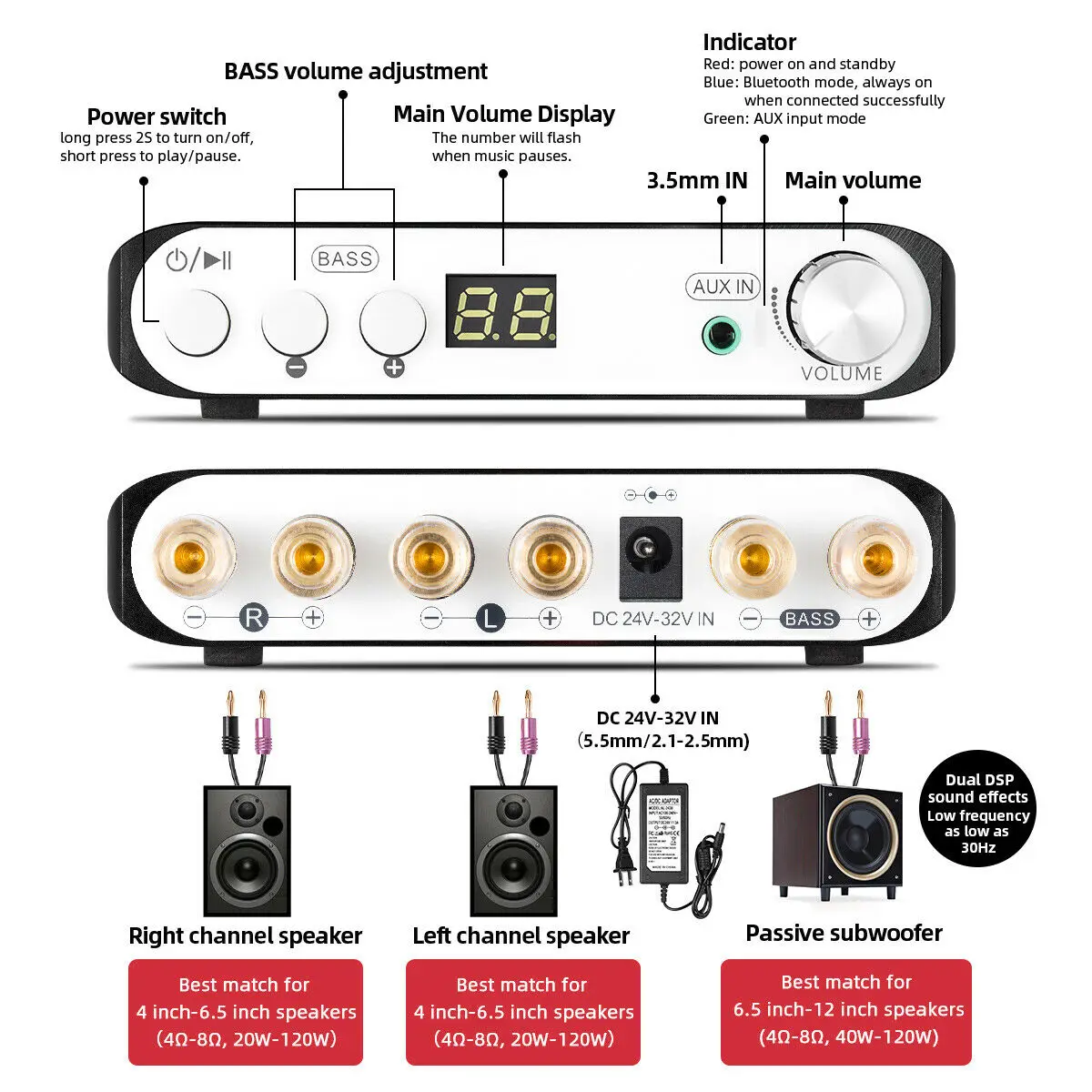 . (30% Off) Comprar 2019 Nobsound Mini HiFi Subwoofer de 2,1 canales Bluetooth 5,0 DSP amplificador de potencia Digital amplificador de bajo estéreo con fuente de alimentación de 24 V 3A Online Baratos.