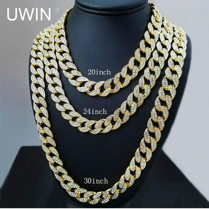 Special Offer UWIN helado Bling strass cristal Goldgen acabado Miami Cuban Link Chain hombres Hip hop collar joyería 20, 24, 30, 36 pulgadas Discount 35% Today!