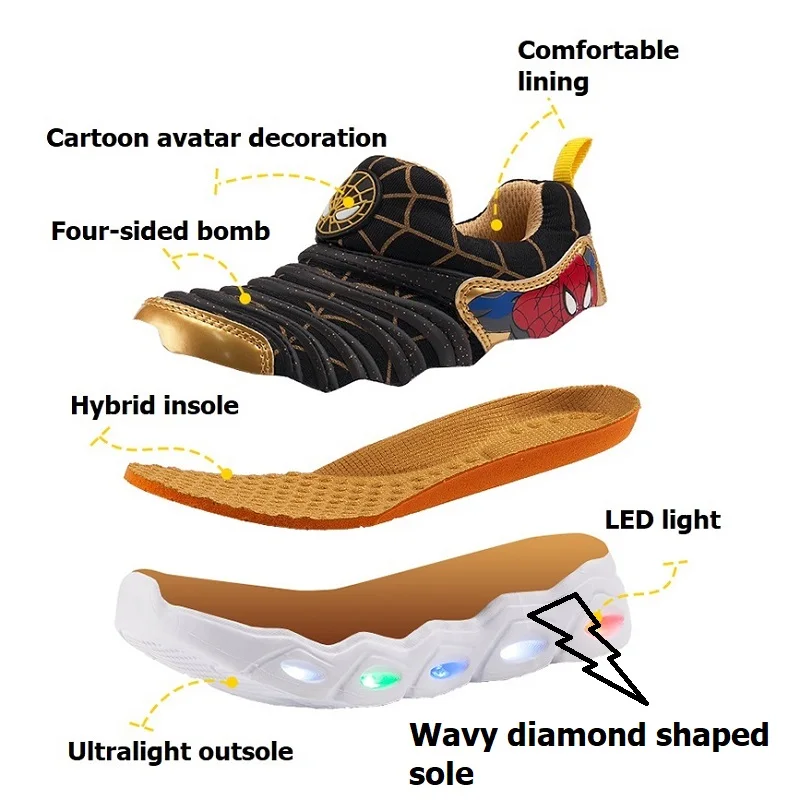 . (50% Off) Comprar Zapatos deportivos para niños 2019 nuevas zapatillas para niñas niños dibujos animados oruga Led zapatos para niños con zapatillas ligeras niño niña Online Baratos.