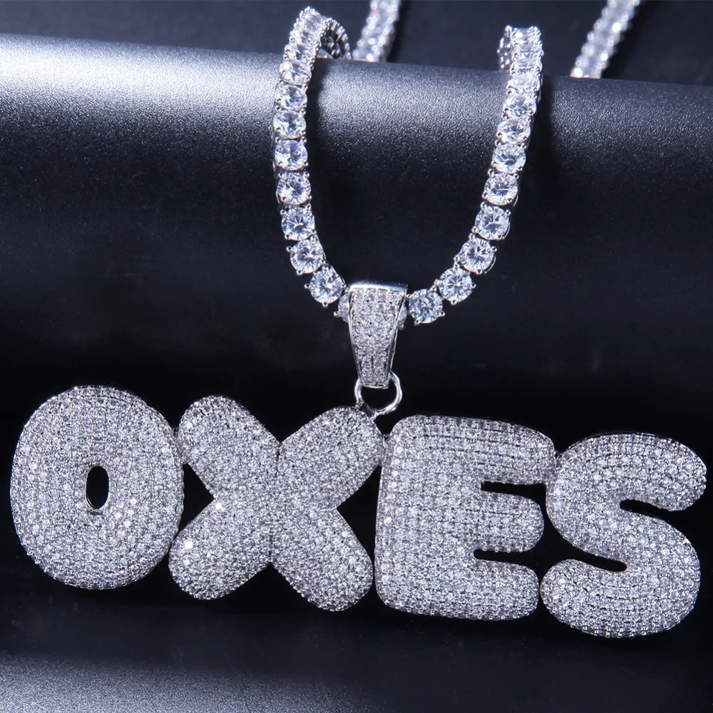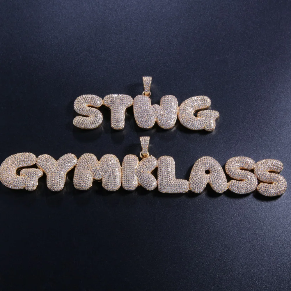 Special Offer Collar de colgante de enlace OEM con nombre de letras inicial de burbujas personalizadas con cadena CZ de 4mm joyas de Zirconia cúbica con hielo Discount 43% Today!