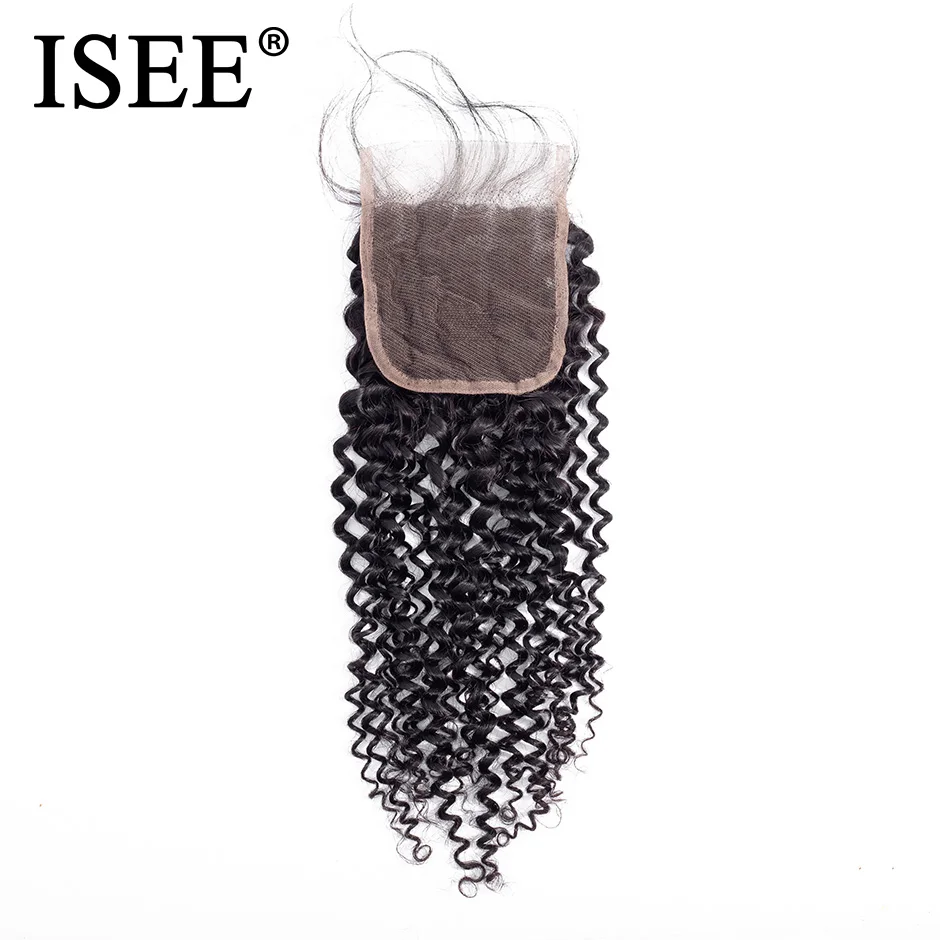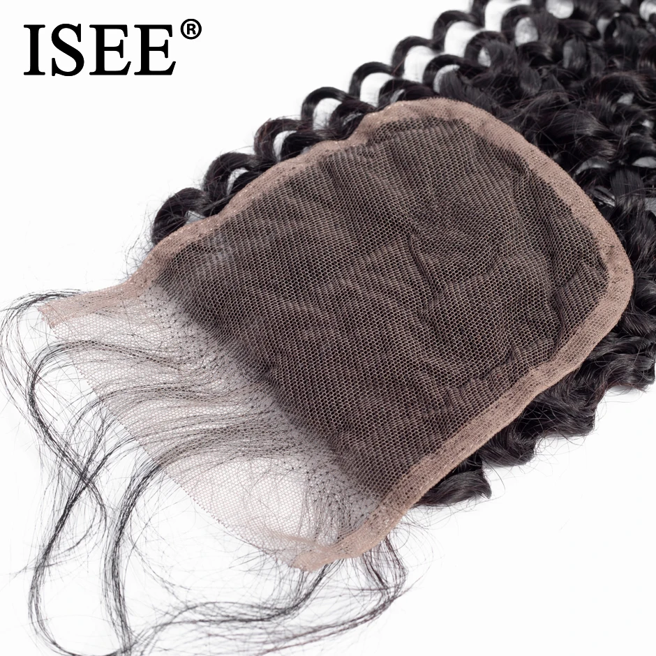 Special Offer ISEE cabello rizado cierre 4*4 parte libre 100% Remy cabello humano paquetes 8 20 pulgadas suizo cierre de encaje envío gratis Color natural Discount 33% Today!