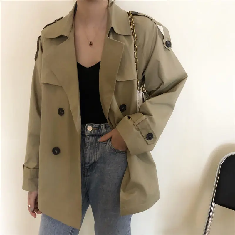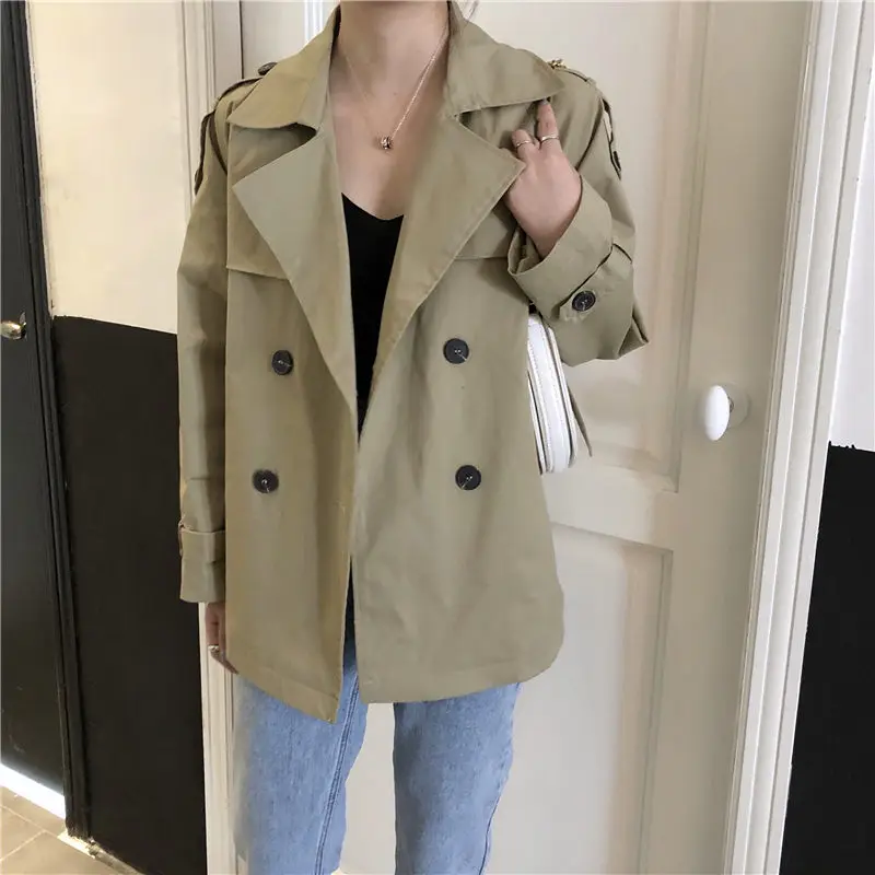 Special Offer HziriP caqui mujer Casual femenina delgada elegante gabardina corta blusas 2019 Chic Streetwear moda fresca breve todo fósforo prendas de vestir Discount 30% Today!