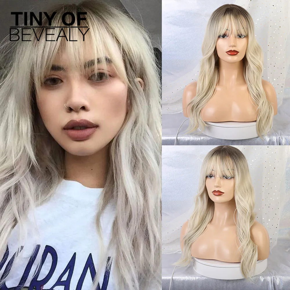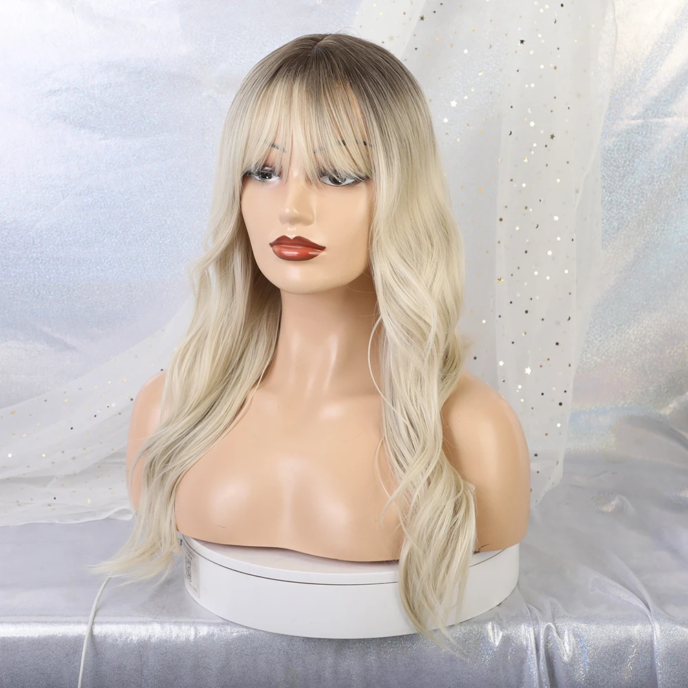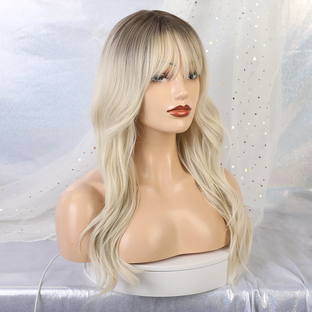 Special Offer Pelucas onduladas sintéticas largas con Bang Ombre pelucas marrones rubias para Mujeres Afro América pelucas de pelo de fibra resistente al calor Discount 50% Today!