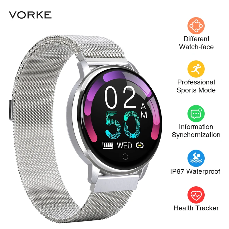 Special Offer Reloj inteligente Vorke VQ3, Monitor de ritmo cardíaco, Milanese Fitness Tracker para hombre y mujer, pulsera milanesa PK Q20 Discount 50% Today!