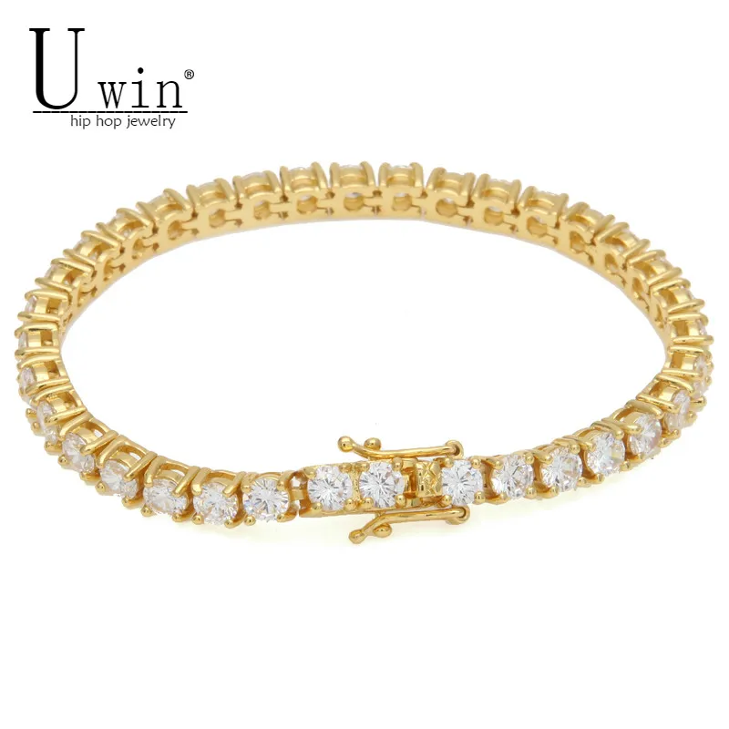 Special Offer UWIN Mens Zircon cadenas de tenis pulsera oro plata Color cobre Material helado 1 Fila CZ cadena Hip hop pulsera 3mm 4mm 5mm Discount 20% Today!