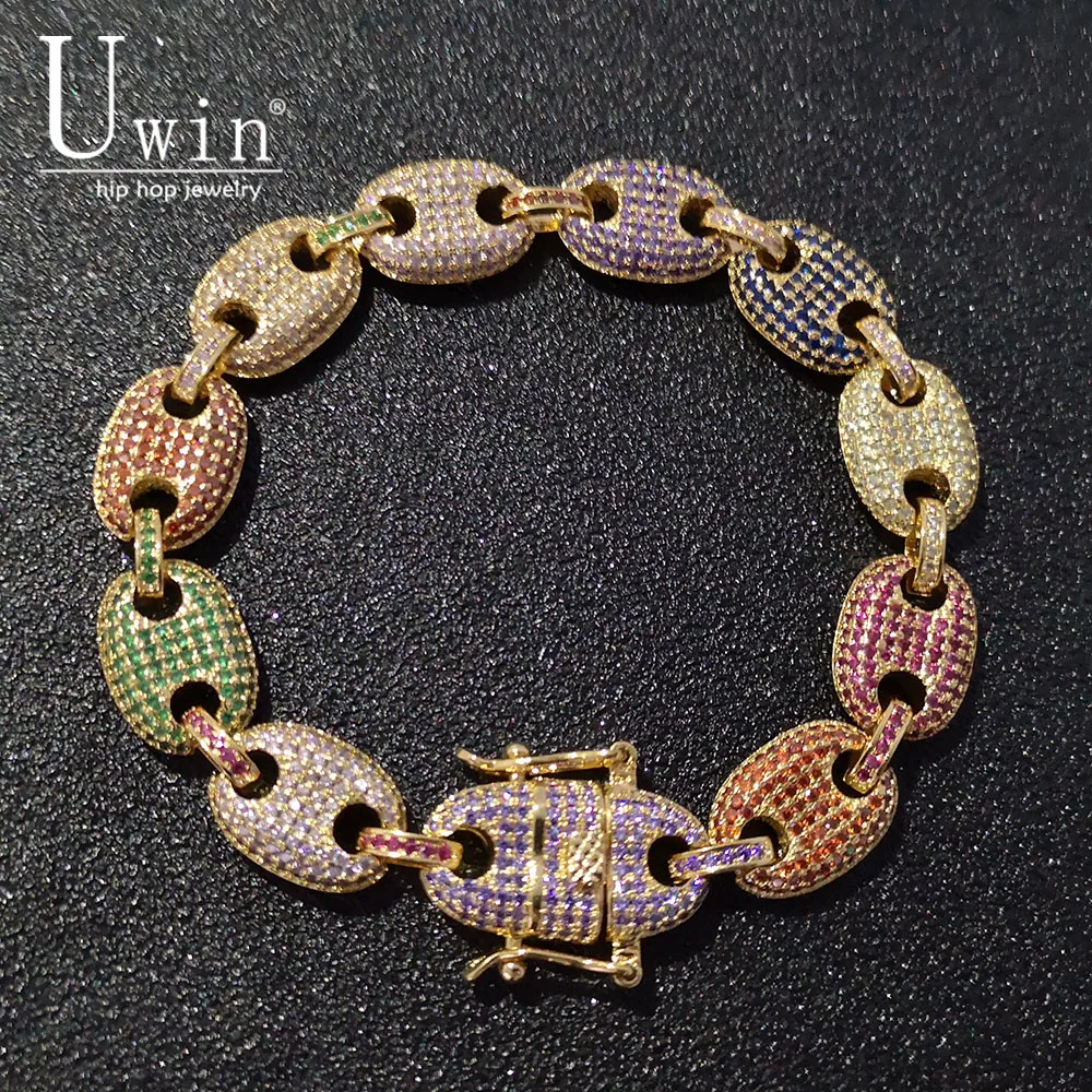 Special Offer UWIN granos de café pulsera Puffed Marine cadena 13mm Hip hop oro plata enlace moda Punk abalorios de Gargantilla joyería 7 pulgadas 8 pulgadas Discount 45% Today!