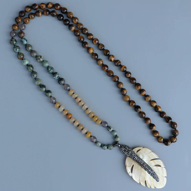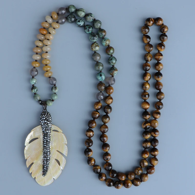Special Offer EDOTHALIA 108 collar de perlas Mala mujer hombre regalo de amante 8MM Ojo de Tigre Concha hoja collares con colgantes de Bisutería Discount 10% Today!