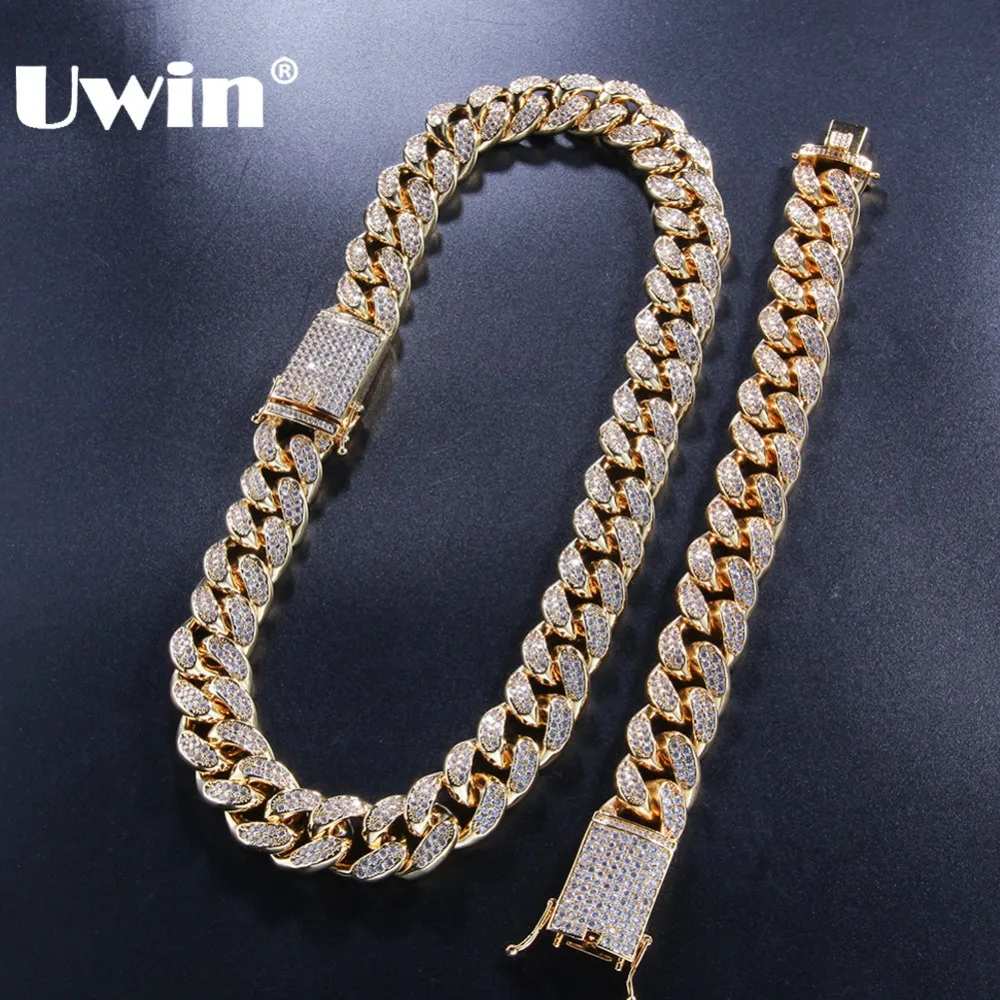 Special Offer Uwin 20mm Cubic Zirconia Cuban Link cadenas y pulseras Set moda Hiphop helado collar joyería para hombres Envío Directo Discount 23% Today!